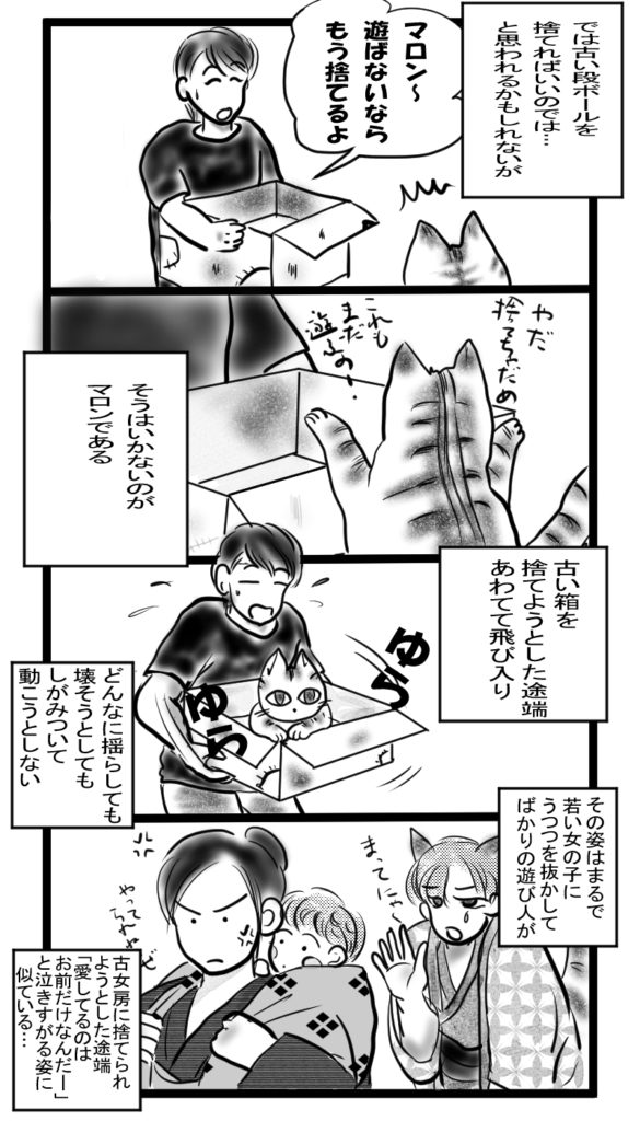 これまでの漫画でもお分かりのようにマロンも段ボール箱が大好き。