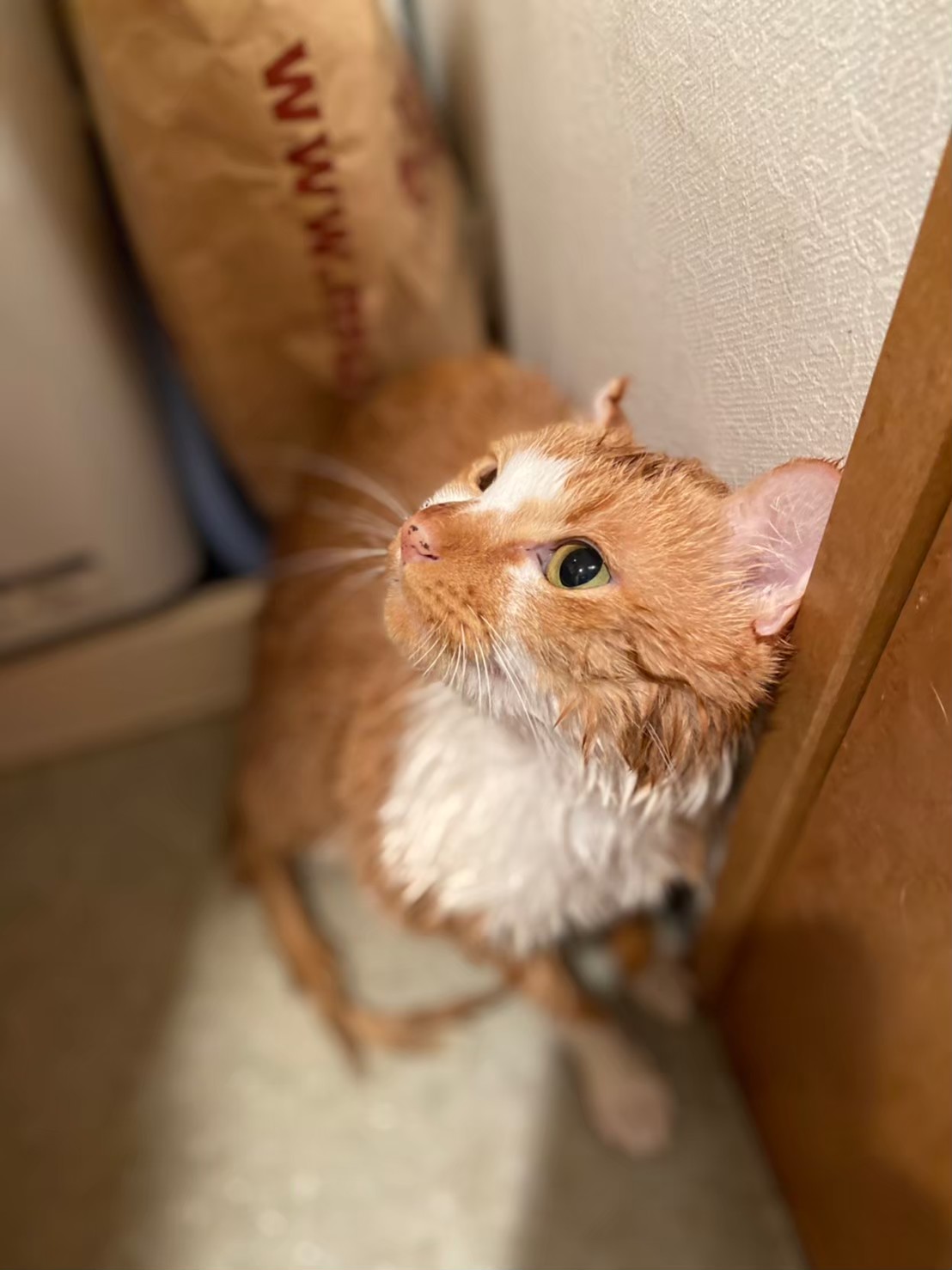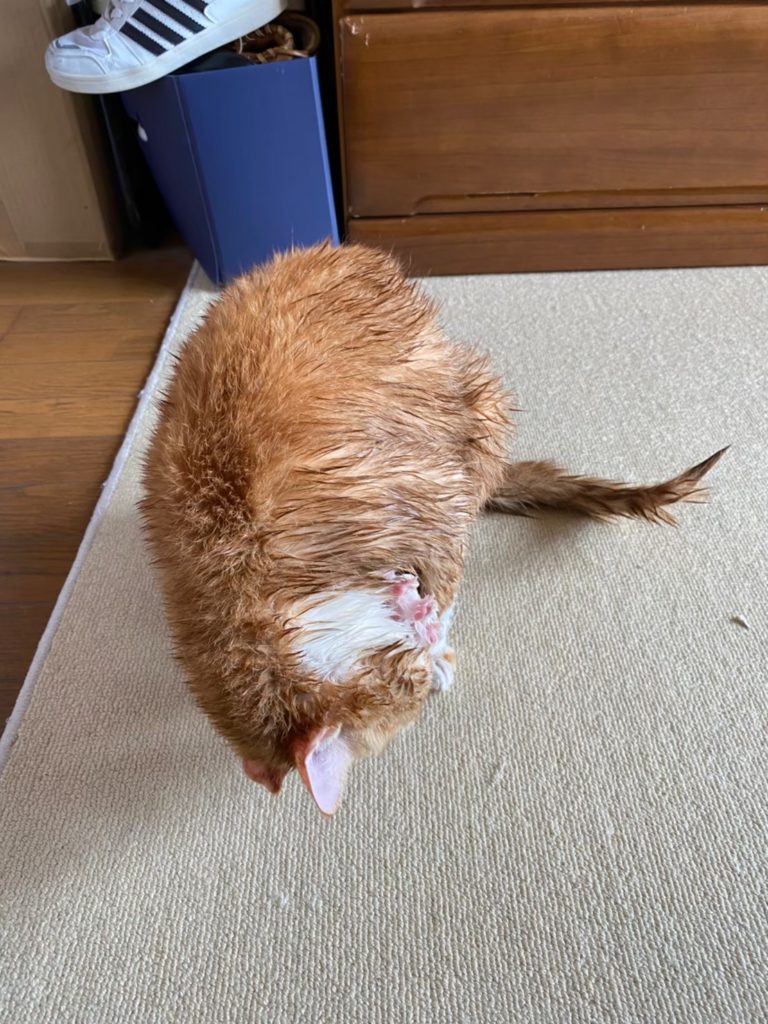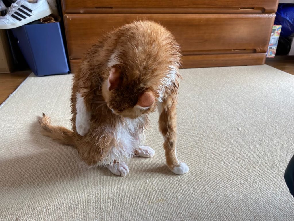 動物を飼っている方なら皆さんご存じだと思いますが、お風呂に入れると毛が濡れてびっくりするほど細くなります。