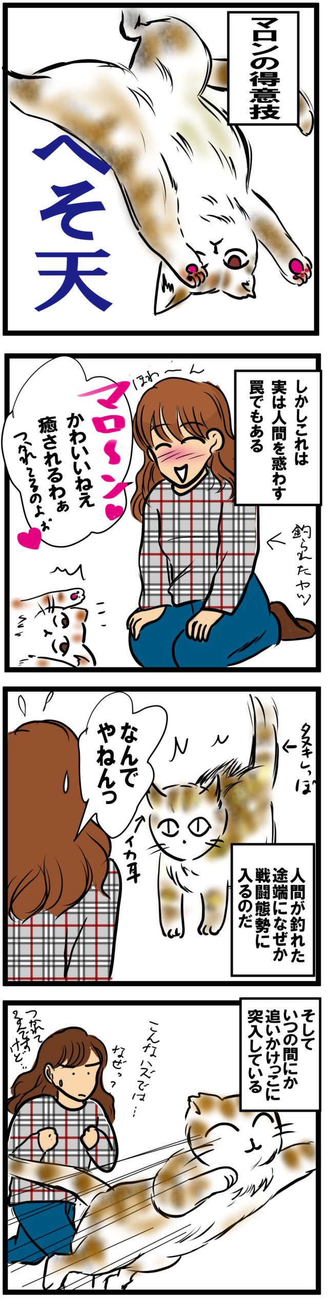 どうもマロン的にはへそ天をすると人が自分に注目して遊んでくれるものと認識しているよう…。