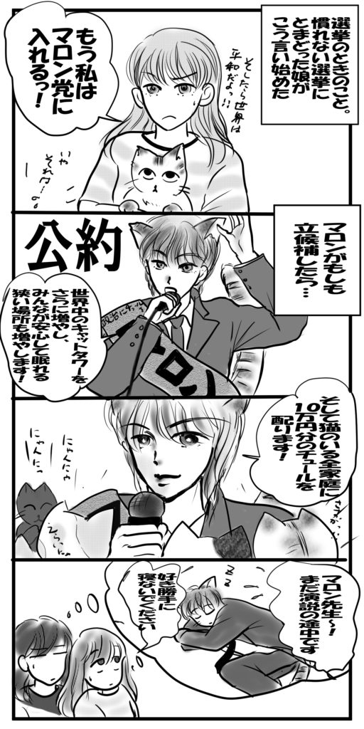 母「いやさ、マロンがもしも政治家になったとするよ?そしたら国民の主食をチュールにしちゃうよ?」