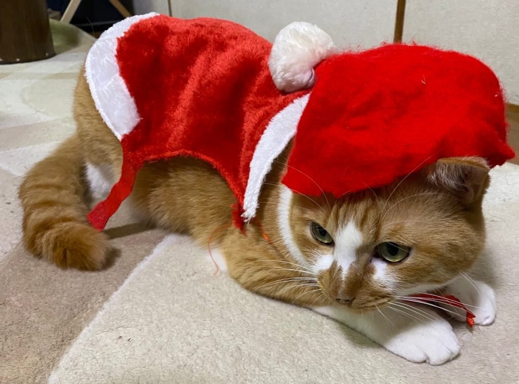 いつも嫌がって着てくれないのですが、昨年のクリスマスは写真を撮る一瞬だけ我慢してくれました💦
